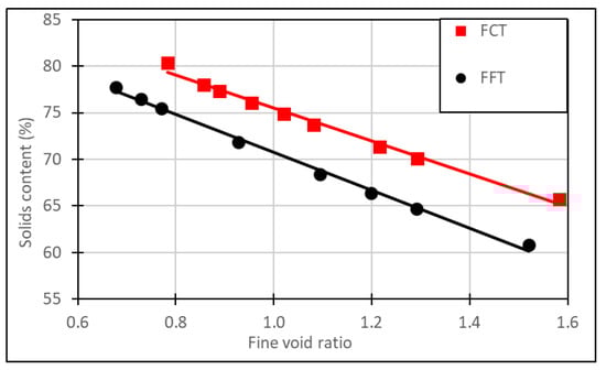 Solids content versus fines void ratio for the FFT and FCT measured using the single-step Tempe cell technique.