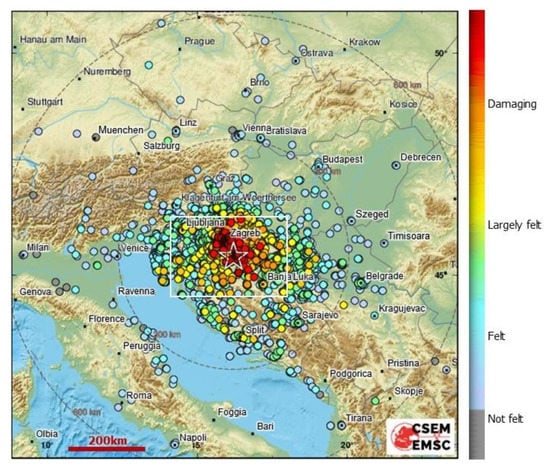 - EMSC. M6.4 CROATIA on December 29th 2020 at 11:19 UTC. 2021. Available online: https://www.emsc.eu/Earthquake/264/M6-4-CROATIA-on-December-29th-2020-at-11-19-UTC (accessed on 11 January 2021).