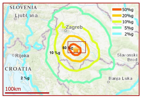 - USGS. M 6.4—2 km WSW of Petrinja, Croatia. 2020. Available online: https://earthquake.usgs.gov/earthquakes/eventpage/us6000d3zh/executive (accessed on 28 November 2022).