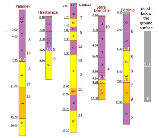 - Geokon-Zagreb d.d. Geotehnički Istražni Radovi za Izvanredno Održavanje l.o. Savskog Nasipa od n.km.r. 101+200 do n.km.r. 102+000 u Naselju Galdovo; Hrvatske Vode: Zagreb, Croatia, 2021. [Google Scholar]