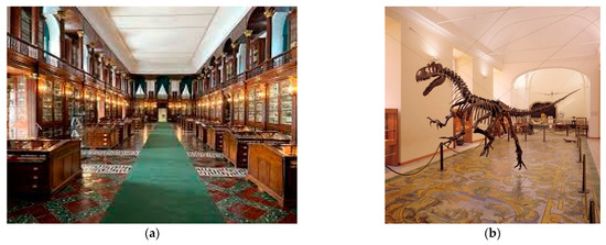 - The Museums of Mineralogy and Palaeontology of Naples (Figure 10): the first, founded in 1801, preserves a collection of over 30,000 artifacts and minerals collected since the end of the 18th century (Vesuvian and artificial crystal collections, meteorites and ancient scientific instruments); the latter, founded in 1932, displays several collections of mammal, plant and reptile fossils and reconstructions in dioramas of the lives of prehistoric humans.
