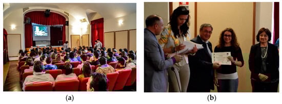 Finally, a concluding ceremony locally sanctioned the end of the PNG training course for each school. The event was attended by students, teachers, school managers, parents, local authorities and representatives of the cultural institutions and companies involved. The event, once again, saw the students as protagonists who illustrated the salient moments of the annual PLS–PNG course with public presentations (photos and videos). Everyone received the right appreciation and a certificate of participation (Figure 13).