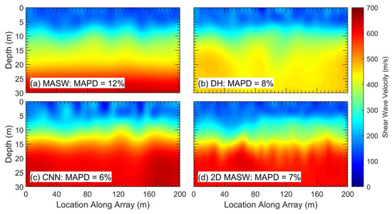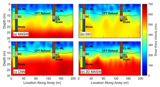- Abbas, A.; Vantassel, J.P.; Cox, B.R.; Kumar, K.; Crocker, J. A frequency-velocity CNN for developing near-surface 2D vs images from linear-array, active-source wavefield measurements. Comput. Geotech. 2023, 156, 105305. [Google Scholar] [CrossRef]