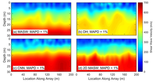 - Vantassel, J.P.; Kumar, K.; Cox, B.R. Using convolutional neural networks to develop starting models for near-surface 2-D full waveform inversion. Geophys. J. Int. 2022, 231, 72–90. [Google Scholar] [CrossRef]