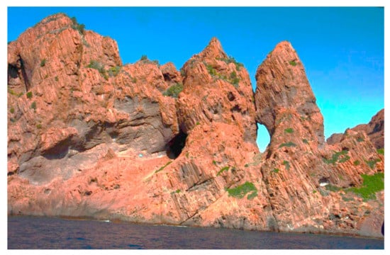 Some landscapes are interesting in their own right, but do not merit registration as geoheritage if considered alone. However, if they are associated with other criteria, their level of interest increases. This is the case, for example, of the Sainte-Victoire massif (Provence, France; Figure 6). This mountain exposes a Provençal thrust front in an educational way. Its southern foothills still bear the remains of Gallic Celto-Ligurian oppidums, and its western foot consists of Cretaceous red earth, rich in dinosaur eggs. In addition, Sainte-Victoire has been painted over and over again, by Pablo Picasso, Vassily Kandisky, and in particular, by Paul Cézanne, who represented it in about sixty paintings and who wrote about it: “As I was telling you this morning, I need to know the geology, how Sainte-Victoire is rooted, the geological color of the land, all that moves me, makes me better” (remarks reported by Joachim Gasquet, Doran, 1978 (letter to his friend, the poet Joachim Gasquet (according to [19,29]). The conjunction of these five criteria unquestionably confers a patrimonial value to this site, which is moreover classified for its picturesque and artistic character under the law of 2 May 1930 and is labelled “Grand Site de France”. In addition, the geology of the site and its geographical location gives it a remarkable ecological interest, which has led to its designation as a Natura 2000 site. The standard data form sent by the French government to the European Commission gives the following brief description of the site: “Supra-Jurassic limestone massif, standing on a base formed by the Cengle plateau. The adret presents a succession of rocky escarpments, while the ubac, less abrupt, is dug by deep valleys. The Sainte-Victoire mountain is a biogeographical limit with meso-Mediterranean vegetation on the adret side (cliff and scree groups) and euro-Mediterranean groups on the ubac side (Genêt de Lobel moors). The flora, of orophilic affinity, presents rare elements for France. The karstic zones, the open environments, and the old forests constitute complex of habitats favourable to chiropterans. A vast continuous forest territory allows for the consideration of a functional entity of the greatest interest.