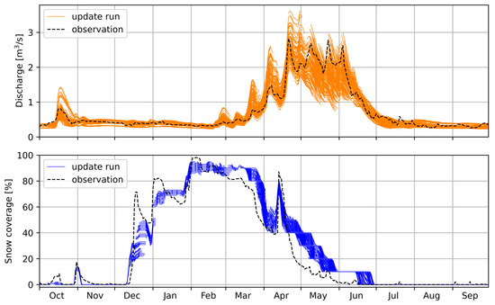 Researchers have shown the advantages of including snow data in hydrological modeling studies for calibration and validation of degree-day based conceptual models [27]. Optimization of model parameters during calibration may force the model to compensate for rainfall-runoff error while sacrificing snow components. Data assimilation could increase the parsimony of the snow states, however, most of the existing implementations of data assimilation in hydrological forecasting have focused on the assimilation of streamflow. The model states which cannot be directly measured become more robust but still suffer from poor snow states and snow forecasts as the external output from the model itself. This is because the assimilation of snow data (SCA, SWE, or snow depth) is not as straightforward as compared to streamflow data. However, the integration of remote sensing snow data and ground snow measurements into data assimilation applications for an operational system is a relatively new field of research which is receiving growing attention [7,28,29,30,31,32]. This might be even more crucial for data-sparse snow-dominated regions; thus, studying and practicing data assimilation techniques with snow observations contributes to a better representation of models.