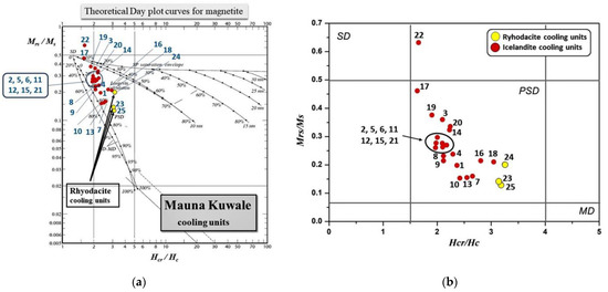 - Dunlop, D.J. Theory and application of the Day plot (Mrs/Ms versus Hcr/Hc) 1. Theoretical curves and tests using titanomagnetite data. J. Geophys. Res. 2002, 107, 2056. [Google Scholar] [CrossRef]