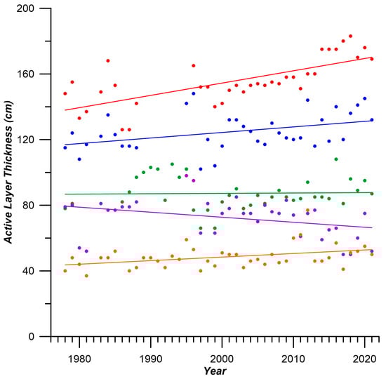 4.3. Landscape-Specific Active Layer Thickness Trends