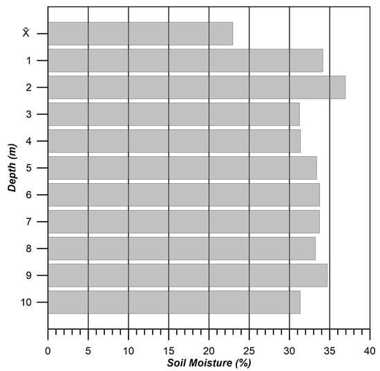 To determine whether a transient layer is present at a site, statistical analysis of soil moisture/ground ice content with depth was performed on a total of 637 samples extracted from 42 deep boreholes 10–12 m deep colocated with landscape-specific sites. Soil moisture content within the active layer was estimated separately from ground ice content in the underlying permafrost. Ground ice content was sampled in 1 m increments to 10 m depth. Results shown in Figure 6 clearly demonstrate the presence of an ice-rich transient layer with 34–37% ice content at the active layer and permafrost. Active layer thickening is likely to slow with that propagation into the transient layer and may result in subsidence, not currently measured at the Marre-Sale suite of monitoring sites.