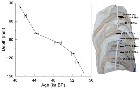 - Cheng, H.; Zhang, H.; Zhao, J.; Li, H.; Ning, Y.; Kathayat, G. Chinese Stalagmite Paleoclimate Researches: A Review and Perspective. Sci. China Earth Sci. 2019, 62, 1489–1513. [Google Scholar] [CrossRef]