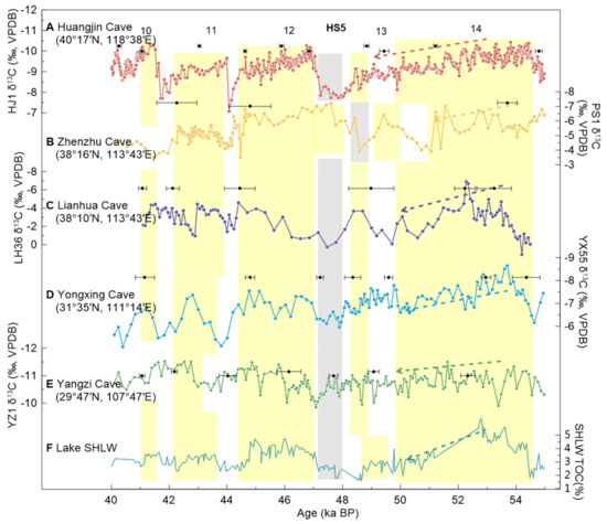 4.2. Millennial-Scale Abrupt Climate Events Recorded by Stalagmite δ13C Records