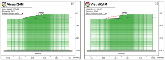 - Hudson, M.; Idriss, I.M.; Beikae, M. QUAD4M: A Computer Program to Evaluate the Seismic Response of Soil Structures Using Finite Element Procedures and Incorporating a Compliant Base; Center for Geotechnical Modeling, Department of Civil and Environmental Engineering, University of California Davis: Davis, CA, USA, 1994. [Google Scholar]