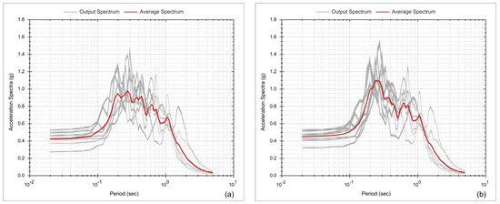For the mean spectrum, three interval classes of the vibration periods in seconds, (0.1–0.5), (0.4–0.8), and (0.7–1.1), were used (Table 7 and Table 8).