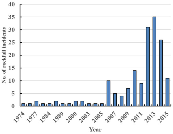Number of major rockfalls in the UK, as recorded by the BGS [1].