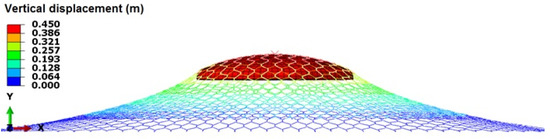 A three-dimensional model of a double-twisted hexagonal wire mesh has been analysed using Abaqus/Explicit [17]. Full advantage was taken of its capability to handle highly non-linear geometric and material responses under dynamic loading conditions.