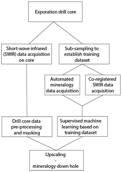 - Acosta, I.; Contreras, C.; Khodadadzadeh, M.; Tolosana-Delgado, R.; Gloaguen, R. Drill-core hyperspectral and geochemical data integration in a superpixel-based machine learning framework. IEEE J. Sel. Top. Appl. Earth Obs. Remote Sens. 2020, 13, 4214–4228. [Google Scholar] [CrossRef]