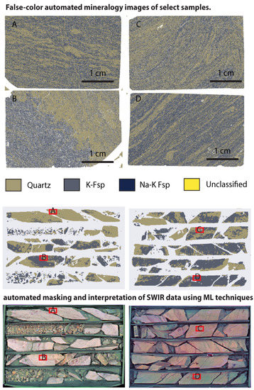 Rotem, A.; Vidal, A.; Pfaff, K.; Tenorio, L.; Chung, M.; Tharalson, E.; Monecke, T. Interpretation of Hyperspectral Shortwave Infrared Core Scanning Data Using SEM-Based Automated Mineralogy: A Machine Learning Approach. Geosciences 2023, 13, 192. https://doi.org/10.3390/geosciences13070192