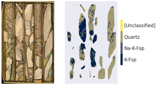 - Acosta, I.C.C.; Khodadadzadeh, M.; Tusa, L.; Ghamisi, P.; Gloaguen, R. A machine learning framework for drill-core mineral mapping using hyperspectral and high-resolution mineralogical data fusion. IEEE J. Sel. Top. Appl. Earth Obs. Remote Sens. 2019, 12, 4829–4842. [Google Scholar] [CrossRef]