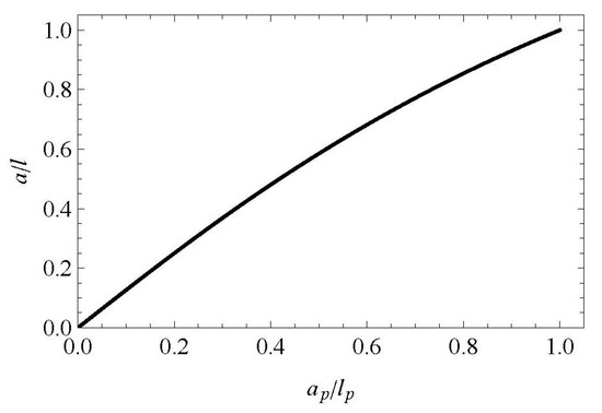 Although the equal surface area representation between the cylindrical and hemispheroidal cavities is feasible, the inversion of (26) to obtain an explicit expression for (ap/lp) in terms of (a/l) is not evident. An alternative is to evaluate the expression (26) for a range of values of (ap/lp) and a graph similar to that shown in Figure 8 can be used to determine an aspect ratio (ap/lp) for a specified aspect ratio (a/l) for the cylindrical cavity.