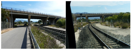Zone 2 is the territory to the north of the regional railway line. All the maps include this zone as being within the Barceló basin, except for the delimitation we have made from the basic hydrographic analysis and the surface digital model with 1-metre precision (LiDAR). After an exhaustive analysis of the fieldwork, the conclusion is that this portion of land cannot be connected to the Barceló watershed, as the cultivation terraces and railway embankment create an authentic drainage divide (see Figure 7 and Figure 8). The historical cartography reveals the profound man-made alteration of the area and how the drainage pattern has changed.