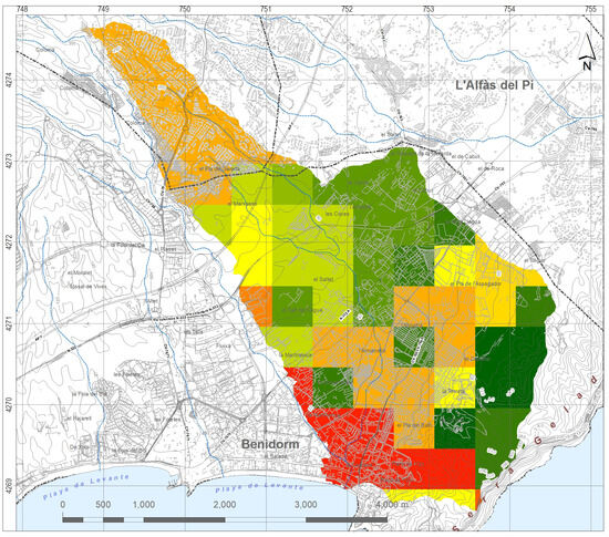 Finally, actions carried out in the middle and upper parts of the basin would have a decisive effect downstream on the volume of water reaching the centre of Benidorm. Likewise, for an integrated management of the basin, it is necessary to agree on measures that integrate the municipalities responsible for the basin, since part of the upper basin, in which there is a considerable degree of occupation, is in the municipality of La Nucia.