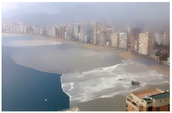 Figure 14 has been included as a graphic example where the consequences of these events can be visualised on Benidorm’s Levante beach, where the Barceló ravine flows into the sea.
