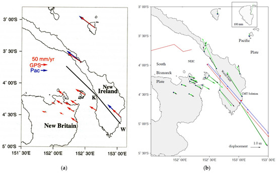 - Tregoning, P.; McQueen, H.; Lambeck, K.; Stanaway, R.; Saunders, S.; Itikarai, I.; Nohou, J.; Curley, B.; Suat, J. Geodetic monitoring of the 16 November 2000—New Ireland Earthquake, Progress Report. Australian National University Research School of Earth Sciences Special Report 2001/3. 2001. Available online: https://openresearch-repository.anu.edu.au/handle/1885/162746?mode=full (accessed on 11 June 2023).