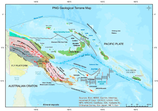 Papua New Guinea (Figure 1) is made up of several terranes classified into four main geotectonic provinces [1,10,11,12]:
