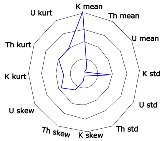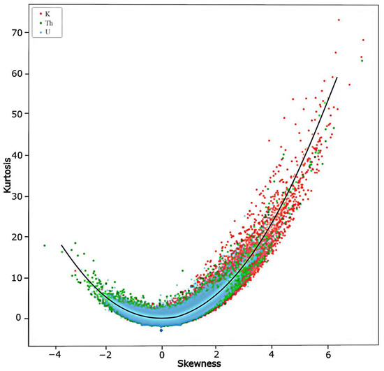 3.4. Calculation of the Statistical Parameters of K, Th, and U Concentration Distribution