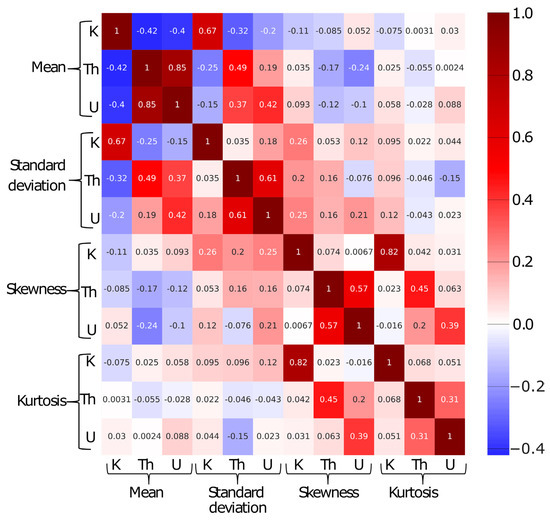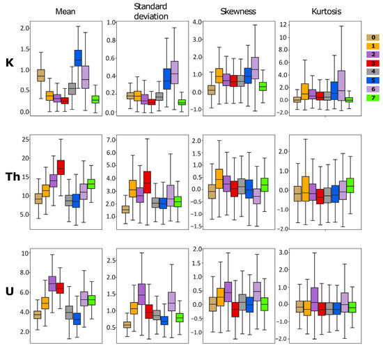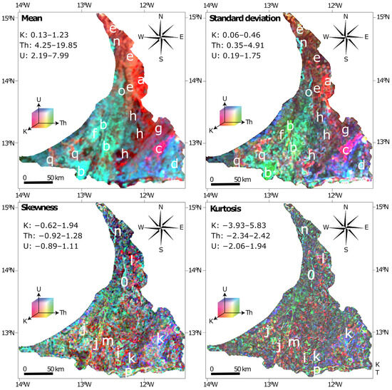 4.1. Maps of the Statistical Parameters of K, Th, and U Concentrations