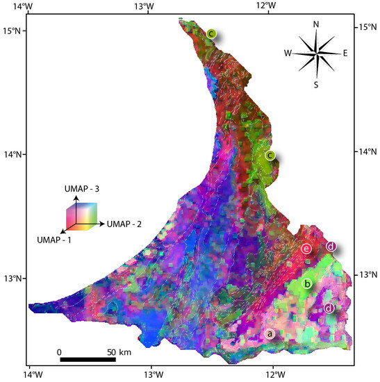 - McInnes, L.; Healy, J.; Melville, J. UMAP: Uniform Manifold Approximation and Projection for Dimension Reduction. arXiv 2018, arXiv:1802.03426. [Google Scholar]