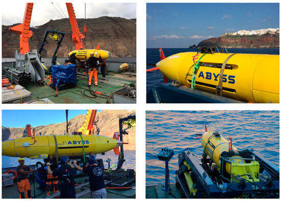 - Nomikou, P.; Polymenakou, P.N.; Rizzo, A.L.; Petersen, S.; Hannington, M.; Kilias, S.P.; Papanikolaou, D.; Escartin, J.; Karantzalos, K.; Mertzimekis, T.J.; et al. SANTORY: SANTORini’s Seafloor Volcanic ObservatorY. Front. Mar. Sci. 2022, 9, 421. [Google Scholar] [CrossRef]