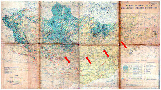 - Sodnom, N.; Yanshin, A.L. (Eds.) National Atlas of Mongolia; Plates 40–41 (Scale 1:4,500,000); GUGK: Ulaanbaatar, Mongolia; Moscow, Russia, 1990. (In Mongolian) [Google Scholar]