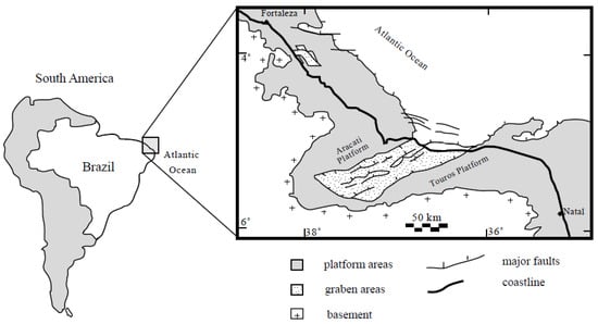 Location map and schematic tectonic framework of the Potiguar Basin, northeastern Brazil. Adapted from Santos Neto and Hayes [].