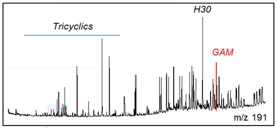 Terpanes’ distribution of Group B. The gammacerane peak is highlighted in red.