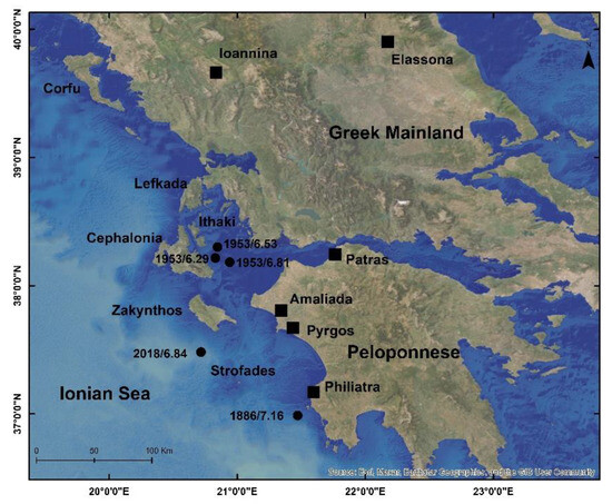 The region of the Ionian Sea, Greece (Figure 1), is characterized by very high seismicity. The islands of Cephalonia, Ithaki, Lefkada and Zakynthos (Zante) experience destructive earthquakes repeatedly. For example, in 1953, the islands were hit by a sequence of very strong earthquakes measuring moment magnitudes of Mw6.29, Mw6.53 and Mw6.81 [1] occurring on 9, 11 and 12 August, respectively (Figure 2). The death toll of about 480 and the extensive destructive effects caused by the 1953 seismic episode are the worst in the seismic history of Greece in about the last 140 years.