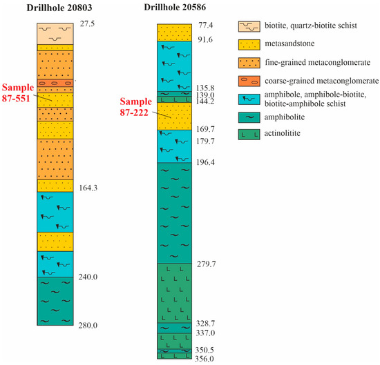 - Zmiivskyi, G.E.; Paranko, I.S.; Zolotareva, L.I. A Comprehensive Geological Study of the Drilling Area of the Kryvyi Rig Superdeep Drill Hole (Second Stage, GIP 2). Prospecting-Survey team of the Kryvyi Rih State Geological Enterprise: Kryvyi Rih, Ukraine, 1990. (In Russian) [Google Scholar]