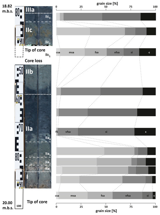 - Based on sedimentary and microfaunal evidence, we identified a high-energy event layer between 19.85 and 19.68 m b.s., representing an allochthonous intermingled marine facies lying on top of autochthonous fluvial deposits of the palaeo-Eider estuary system. This event facies bears sedimentary characteristics typical of tsunami impact such as a basal erosional unconformity, abundant shell debris, fining-upward in grain size and an upward increase of organic matter as well as incorporated muddy rip-up clasts.