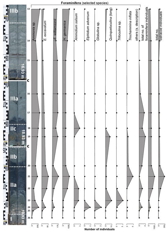 - Elschner, A.; Scheder, J.; Bungenstock, F.; Bartholomä, A.; Becker, T.M.; Capperucci, R.M.; Enters, D.; Karle, M.; Schlütz, F.; Wehrmann, A.; et al. Microfauna- and sedimentology-based facies analysis for palaeolandscape reconstruction in the back-barrier area of Norderney (NW Germany). Neth. J. Geosci. 2021, 100, e4. [Google Scholar] [CrossRef]