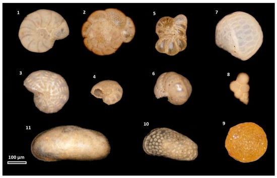 - Loeblich, A.R.; Tappan, H.N. Foraminiferal Genera and Their Classification; Springer: New York, NY, USA, 1988; 970p. [Google Scholar]