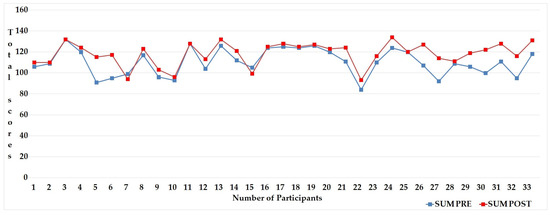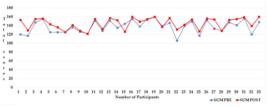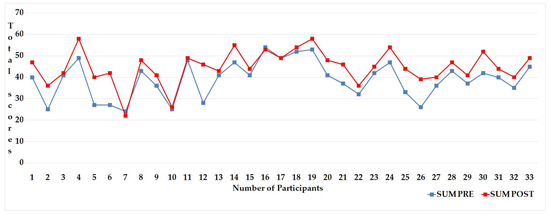 A total of 41 questionnaires were collected at the beginning of the summer school, and 36 were retrieved at the end. Ultimately, 33 matched pre–post questionnaires were included in the analysis. Data were coded and entered into Microsoft Excel for accuracy and reliability checks.