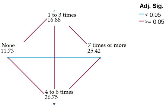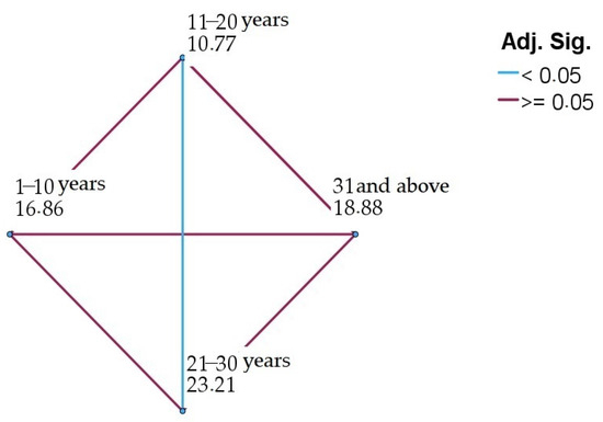 Place attachment and place meaning exhibited the highest correlation (ρ = 0.734), indicating a strong link between the emotional connection to the place and the significance attributed to it. Place meaning and geoethical awareness had a slightly lower correlation (ρ = 0.699), but still significant, highlighting that the perceived importance of the place is closely related to geoethical awareness. Place attachment and geoethical awareness showed a notable correlation (ρ = 0.664), emphasizing the association between a strong connection to the place and a higher level of geoethical understanding.