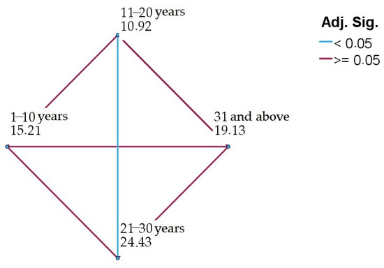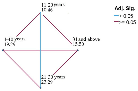 Conversely, there was little agreement with items suggesting negative attributes, such as the park being “overdeveloped” (item B12, mean = 1.64, S.D. = 0.143) or “crowded” (item B18, mean = 1.70, S.D. = 0.141). The perceptions of the Sitia UGGp as “spiritually significant” (item B23, mean = 2.79, S.D. = 0.188) or primarily for “fun” (item B16, mean = 2.85, S.D. = 0.209) were also relatively low.