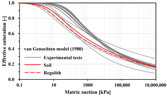 where represents the air pressure, and denotes the pore water pressure. , , and are the fitting parameters of the Soil Water Characteristic Curve model [].