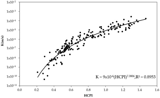 - Since many factors may control the hydraulic conductivity of fractured rocks, the HCPI model is limited in predicting hydraulic conductivity from the observed range of the composite index HCPI and the collected lithologies. Due to the limitations, reliable hydraulic conductivity may be confined to 10−10 m/s to 10−4 m/s and applicable to specific lithologies (as shown in Table 1). It should also be noted that hydraulic conductivity prediction for non-deep seated landslide sites should be carefully inspected for reasonability.