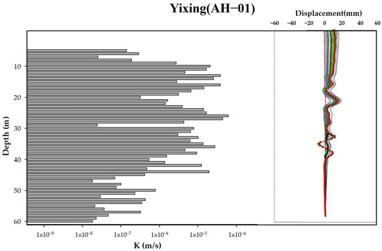 Comparison diagram for hydraulic conductivity profile and observed S-shaped inclinometer data (an example of the Yixing landslide site).