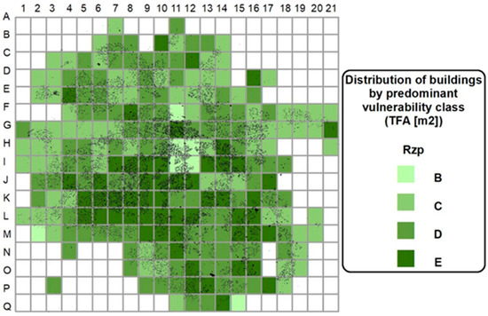 Distribution of buildings (TFA [m2]) by predominant vulnerability class.