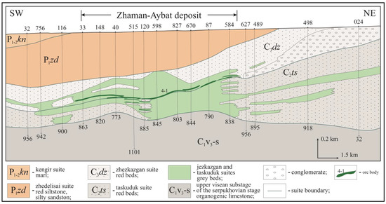 - Satpayeva, M.K. Mineralogy of ore deposits of Zhaman-Aybat deposit. News NAS RK Geol. Ser. 2006, 5, 29–41. [Google Scholar]