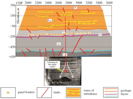 - Opening up of tectonic fault zones by the underground workings, through which groundwater flows into the mine from the overlying aquifer while gray-colored siltstones and mudstones sharply lose strength and stability when flooded.