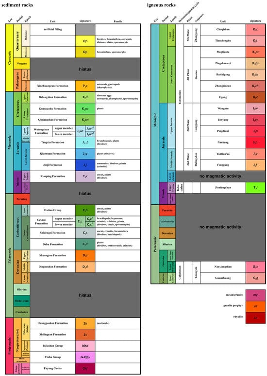 Here, we provide a synthesis of the palaeontological research in the Shenzhen region in Guangdong, China, to date, and a comprehensive review of the fossil record of this area and assess its value for future studies and tourism. Owing to previous geological surveys focusing on different geographical regions, with many including an outdated stratigraphic scheme, the lithostratigraphy in the Shenzhen area is partly ambiguous and not always correlatable. In this paper, we follow the scheme used in [] (Figure 2).